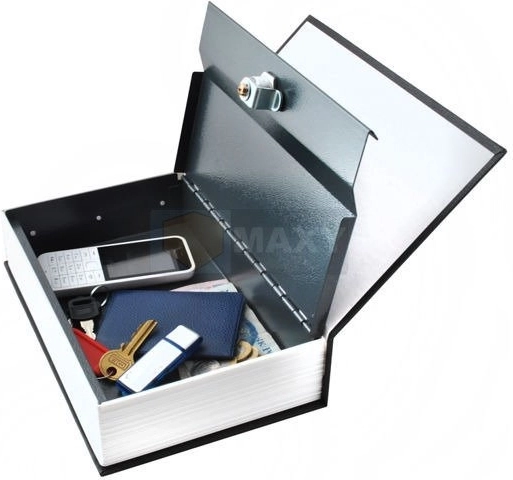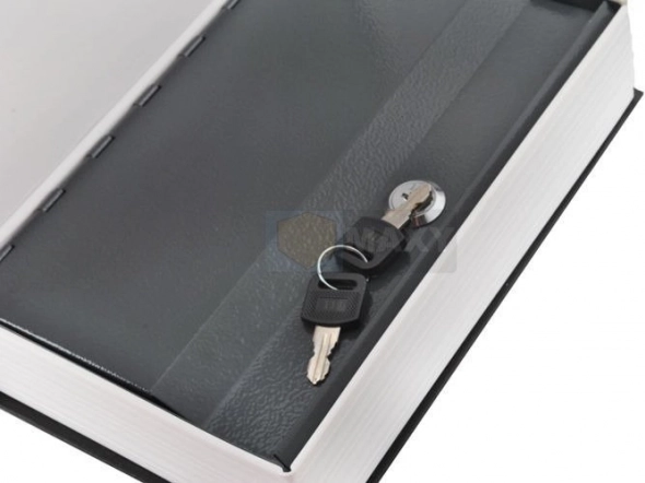La cubierta recuerda a un diccionario de inglés, por lo que la caja fuerte se integra perfectamente con otros libros en la estantería y ofrece la máxima discreción.