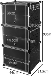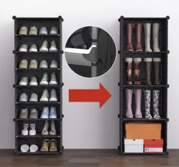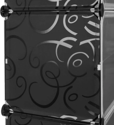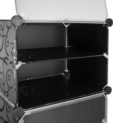 Los paneles de plástico resistentes con un patrón decorativo y los conectores metálicos garantizan estabilidad y larga vida útil incluso con uso diario. El montaje es intuitivo, sin herramientas especiales, y gracias a sus dimensiones compactas el zapatero ahorra espacio en el recibidor, el vestidor e incluso el dormitorio.