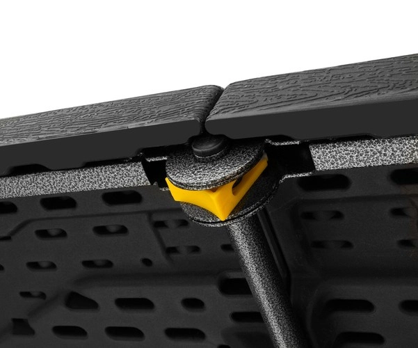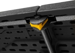 La estabilidad está garantizada por la estructura de marco de acero con recubrimiento en polvo y tubos de 25 mm de diámetro. La mesa es una excelente opción para jardines, terrazas, catering, banquetes y conferencias, donde se requiere un montaje rápido, fiabilidad y durabilidad.