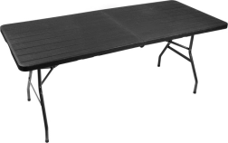 ¿Busca una mesa grande y resistente para celebraciones familiares, barbacoas o eventos? Esta mesa plegable de 180 cm proporciona espacio suficiente para servir y sentarse cómodamente en grupos más grandes. El tablero de HDPE con atractivo aspecto de madera es firme, flexible y fácil de mantener. Al plegarse, la mesa se convierte en un maletín plano que se transporta y guarda con facilidad.