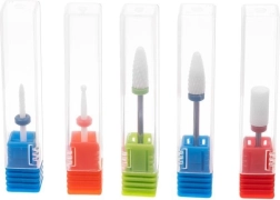 El juego de 5 fresas cerámicas es ideal tanto para salones profesionales como para el cuidado en casa. La cerámica no transmite el calor, por lo que no se produce una sensación de quemazón durante el uso, y además es extraordinariamente duradera y eficiente. Las diferentes formas y niveles de granulado permiten una eliminación precisa del material, el suavizado de la cutícula y el pulido de la superficie de la uña.