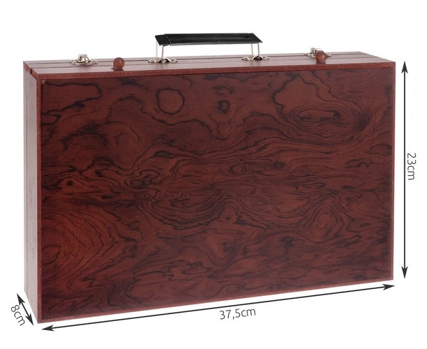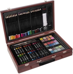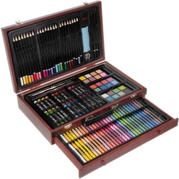 Este set artístico universal es una gran elección tanto para principiantes como para avanzados. Gracias a la amplia paleta de materiales, podrás probar técnicas variadas: desde dibujo a lápiz y con pasteles hasta pintura en acuarela. El resistente maletín de madera protege el contenido y mantiene el orden, para que puedas concentrarte solo en crear.