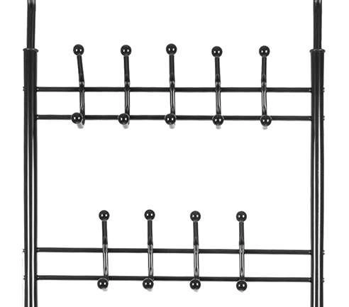 El marco metálico duradero asegura estabilidad incluso con cargas mayores y las patas ajustables ayudan a nivelarlo en superficies irregulares. La disposición inteligente de ganchos y estantes facilita la organización de toda la familia.