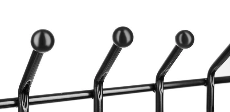 Dos filas de ganchos con puntas redondeadas cuidan las prendas y ofrecen espacio de sobra para chaquetas, abrigos, bufandas, gorros y bolsos.