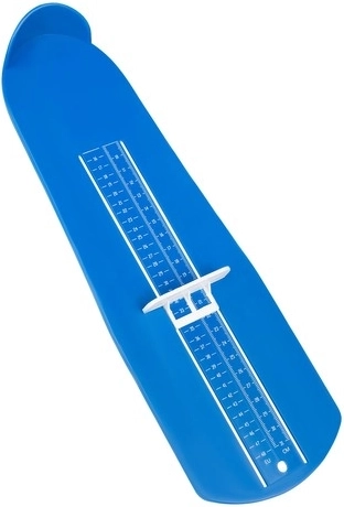 El medidor está equipado con una base para el talón y un indicador deslizante, lo que garantiza una medición precisa. Está hecho de resistente plástico ABS, lo que asegura una larga vida útil. Su construcción ligera y sus dimensiones compactas permiten usarlo cómodamente en cualquier lugar.