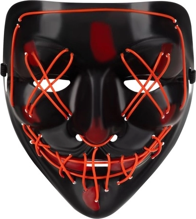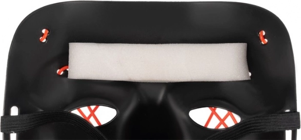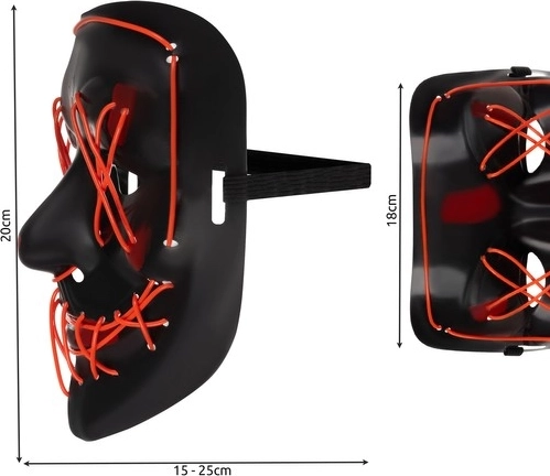 La máscara ofrece tres modos de iluminación diferentes: fijo, pulsante e intermitente rápido, añadiendo un toque divertido a cualquier fiesta. También se suministra con una cinta elástica, que permite un ajuste perfecto a la forma del rostro.