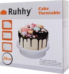 El soporte giratorio para tartas Ruhhy es el asistente ideal para cualquiera interesado en la decoración de tartas a nivel profesional. Fabricado en plástico de alta calidad, garantiza durabilidad y una limpieza sencilla. Este soporte no solo facilita el trabajo de decoración, sino que también luce elegante como bandeja para tus postres.