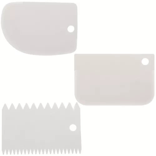 El paquete incluye tres espátulas decorativas, cada una con un patrón diferente, que te ayudarán a crear diversas texturas en tus tartas.