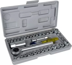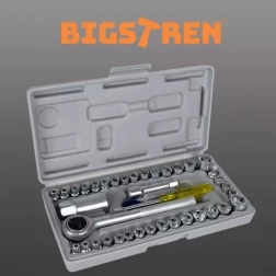 Este completo juego de 40 piezas de llaves de vaso BIGSTREN cubre medidas métricas y en pulgadas y ofrece todo lo necesario para montaje, reparaciones y mantenimiento. Las piezas están fabricadas en acero de calidad y guardadas en un maletín compacto de 24,5 × 12,5 × 4 cm, para tener siempre la herramienta ordenada y a mano.
