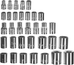 El juego universal de llaves de vaso BIGSTREN con un total de 40 piezas en un maletín resistente es ideal para el taller, el coche y el hogar. Fabricado en acero cromo‑vanadio/inoxidable para alta resistencia a la corrosión, la deformación y las roturas. El estuche seguro y organizado mantiene cada pieza en su lugar, mientras que la carraca, las extensiones y el adaptador con bola de retención garantizan un uso cómodo y seguro sin que se caigan las vasos.
