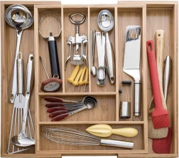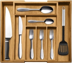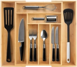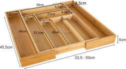El ingenioso sistema deslizante permite ampliar el organizador de 6 a 8 compartimentos. Así crearás fácilmente espacio para tenedores pequeños, cuchillos y otros accesorios.
