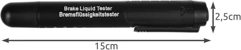 Gracias a su formato de bolígrafo es fácil de transportar y siempre estará a mano tanto en el taller como en carretera. Alimentación con una batería AAA estándar y construcción resistente de plástico para un uso fiable. La comprobación rápida de la calidad del líquido de frenos ayuda a mantener la capacidad de frenado y la seguridad del vehículo.
