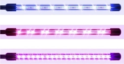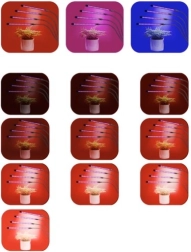 Alterna entre luz roja (660 nm), azul (460 nm) y combinada violeta. Favorece la germinación, el crecimiento y la floración con la máxima eficiencia.