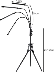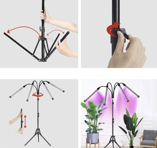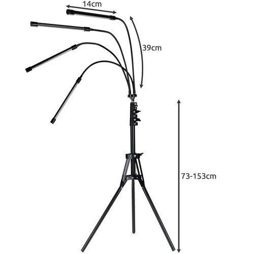 Orienta cada panel exactamente hacia tus plantas. Los brazos flexibles y el trípode regulable en altura cubren una mayor área sin sombras.