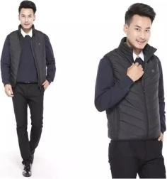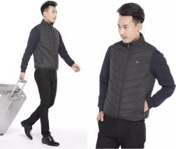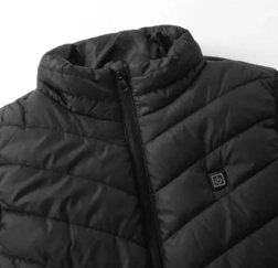 El chaleco permite conectarse a una powerbank mediante USB para un calentamiento inmediato, con tres niveles de intensidad en nueve zonas distribuidas por el torso.