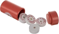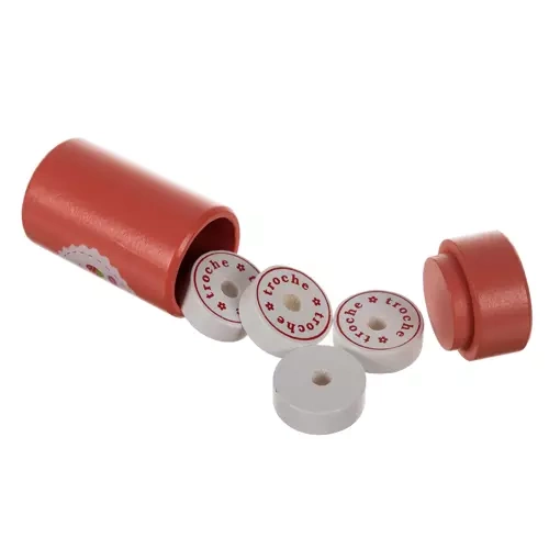 Incluye también un modelo dental con dientes extraíbles para entrenar la higiene bucal correcta, estetoscopio, termómetro, jeringa, “medicamentos” y otros accesorios. La elaboración en madera es atemporal, resistente y agradable: ideal para el juego diario.