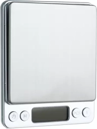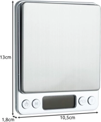 ¿Buscas mediciones precisas incluso para las cantidades más pequeñas? Esta báscula de cocina digital de acero inoxidable con cuerpo de plástico ofrece precisión de 0,01 g y capacidad máxima de 500 g. Gracias a la pantalla LCD con retroiluminación azul leerás fácilmente los valores en cualquier condición, y la función TARE te permite pesar los ingredientes directamente en el cuenco sin cálculos complicados.