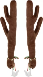 Grandes cuernos marrones con cascabeles y lazos incorporados que aportan alegría a las celebraciones navideñas.