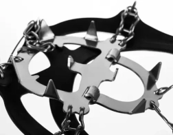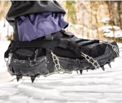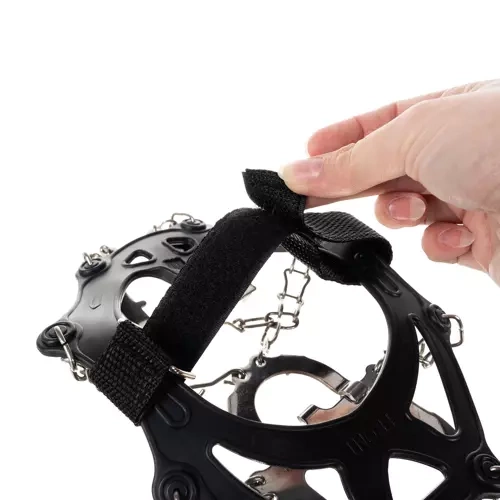Las cadenas de acero inoxidable y los 12 clavos en cada pie proporcionan máxima tracción en condiciones invernales, ya sea en ciudad, senderos o montaña.