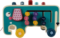 Juguete de madera para niños con forma de elefante, que desarrolla las habilidades motoras y el pensamiento lógico. Ofrece muchas actividades que entretendrán a los niños durante horas.