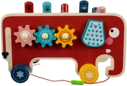 El elefante de madera está diseñado para no solo divertir, sino sobre todo desarrollar la motricidad fina y las habilidades de los niños. Equipado con engranajes de diferentes colores y un laberinto con números, es ideal para el juego individual y en grupo.