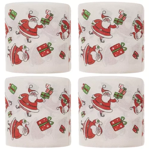 El papel higiénico navideño con el divertido motivo de PAPÁ NOEL aporta de inmediato un ambiente festivo al baño. Las dos capas garantizan un uso cómodo y fiable, mientras que la impresión en color de calidad decora cada hoja. El paquete de 4 rollos es una gran solución para todo el período de Adviento y las fiestas.