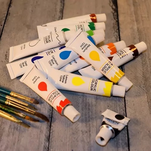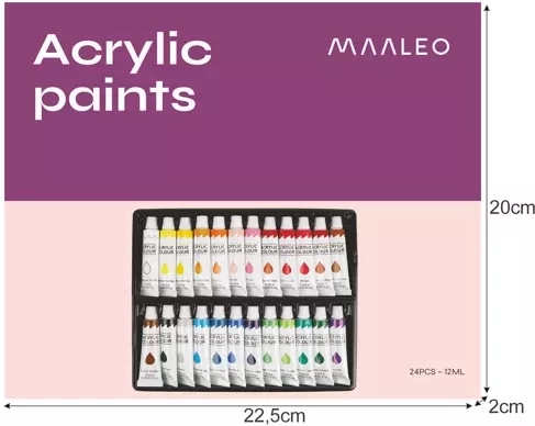 Descubre un mundo de color y creatividad con este set de pinturas acrílicas. Cada tubo contiene 12 ml de pintura, adecuada para usar en diversas superficies. El set incluye: