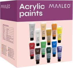 El set de pinturas acrílicas MAALEO ofrece una rica paleta de 12 tonos intensos que se mezclan fácilmente entre sí. Cada tubo de 100 ml proporciona suficiente pintura incluso para proyectos más grandes. Tras el secado, la capa es resistente, no destiñe y no se agrieta, por lo que tus obras se mantendrán bonitas durante mucho tiempo.