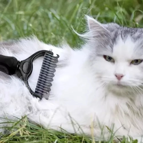 Las puntas redondeadas protegen la piel del animal y los bordes internos afilados se encargan fácilmente de los nudos: desenredado eficaz sin riesgo de irritación.