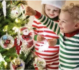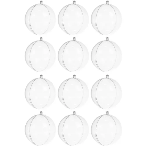 Crea tu propia decoración mágica con bolas de Navidad transparentes que se abren en dos mitades y permiten colocar plumas, purpurina, musgo, confeti o nieve artificial. El material resistente no se astilla, por lo que son ideales para manualidades en familia. El set incluye 12 bolas de 8 cm de diámetro y cordones para colgar, perfectas para decoraciones DIY y un estilo navideño único.