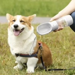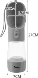 La botella sirve como depósito de agua, comida y cuenta con un cuenco integrado para facilitar la alimentación de tu amigo peludo. Esta solución garantiza que tu mascota nunca pase sed ni hambre.