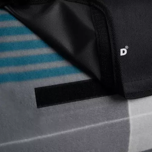 La manta está fabricada con materiales resistentes y una capa aislante de aluminio, por lo que se mantiene seca incluso sobre superficies húmedas.