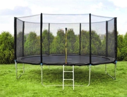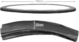 El borde protector es universal y se ajusta a la mayoría de trampolines con diámetro de 180–183 cm. La instalación se realiza en un momento sin herramientas: las prácticas gomas garantizan una sujeción firme. Para elegir correctamente, basta con medir el diámetro exterior de tu trampolín.
