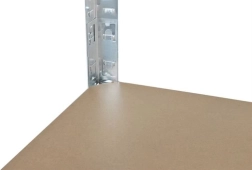 Las patas metálicas de la estantería disponen de fundas antideslizantes que protegen el suelo de daños y garantizan la máxima estabilidad. Las estanterías se pueden unir en conjuntos más grandes e incluso fijarse a las paredes para mayor seguridad con carga completa.