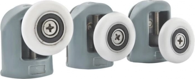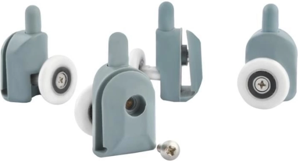 Este juego de ruedas para cabinas de ducha incluye ocho ruedas diseñadas para un uso universal. Cada rueda está equipada con un mecanismo plástico y metálico resistente que garantiza un deslizamiento suave de las puertas de la ducha.