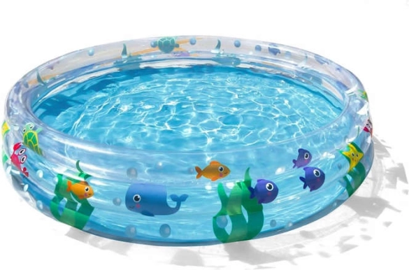 La piscina está equipada con tres anillos inflables que garantizan estabilidad y comodidad. Es fácil de plegar y cuenta con cierre anti-fugas de aire, lo que aumenta su durabilidad y seguridad.