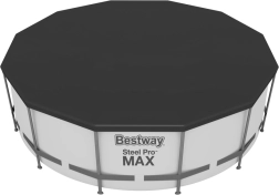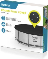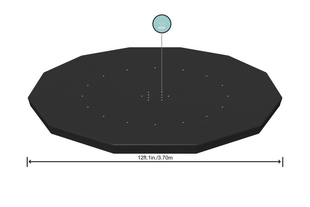 La práctica lona de cobertura BESTWAY para piscinas redondas de 366 cm mantiene el agua limpia por más tiempo y lista para bañarse. Gracias al PVC resistente, al cordón de ajuste y a los orificios de drenaje, protege la piscina de hojas, insectos e incluso lluvia ligera, evita el crecimiento de algas y ayuda a mantener la temperatura del agua.