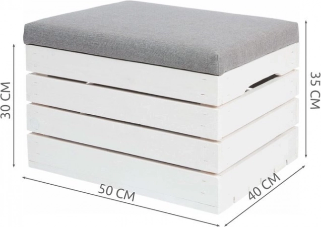 La construcción robusta de madera de abeto secada y cepillada con lamas anchas (hasta 13 cm) garantiza estabilidad y larga vida útil. La espuma altamente elástica T-25 proporciona un asiento cómodo, ya sea que utilice el puf como banco en el recibidor, reposapiés junto al sofá o práctica mesa auxiliar en el balcón.