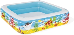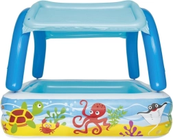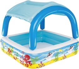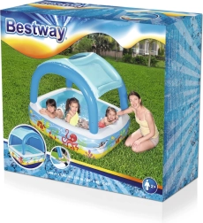 Esta piscina infantil inflable de la marca Bestway está fabricada con material de vinilo resistente que garantiza diversión duradera y seguridad durante el juego. La piscina incluye dos anillos inflables independientes, que ofrecen estabilidad y seguridad, mientras que el dosel inflable protege a los niños de los rayos solares dañinos. El paquete también incluye un parche de reparación impermeable, que permite reparar la piscina incluso dentro del agua.