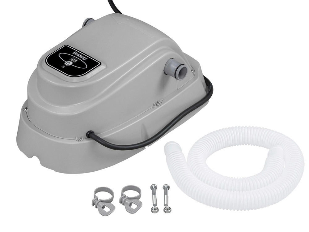 Disfruta del baño antes y con más comodidad con el calentador de agua para piscina BESTWAY. El dispositivo ofrece alto rendimiento de 2800 W, rápido aumento de la temperatura del agua hasta 20 °C de confort óptimo, regulación digital de la temperatura y protección contra sobrecalentamiento. Compatible con bombas de filtración de hasta 3 785 l/h y adecuado para piscinas con un volumen de 1 520–17 035 l.