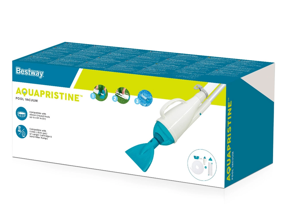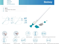 El kit de limpieza para piscinas Bestway AquaCrawl está diseñado para una limpieza fácil y eficiente de piscinas. Permite eliminar impurezas del agua, incluyendo insectos, hojas y otras partículas, garantizando un agua limpia y cristalina.
