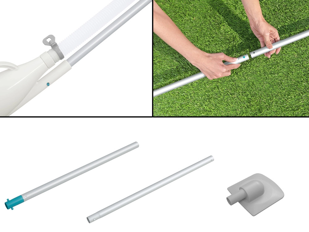Mango de 1,9 m y manguera de succión de 6 m para limpiar fácilmente las superficies de la piscina.