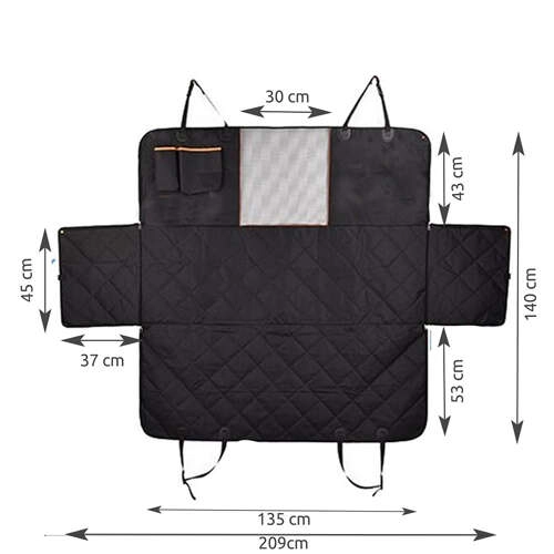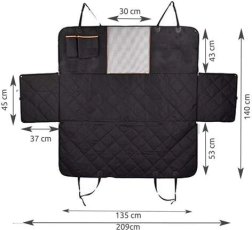 - Instalación fácil y seguridad para tu mascota gracias a las aberturas para cinturones de seguridad. La funda se despliega fácilmente sobre los asientos traseros y se fija con correas.