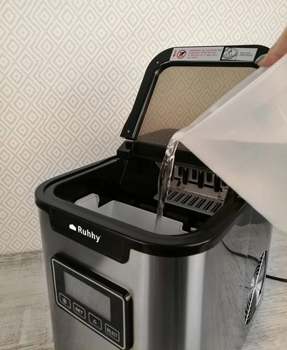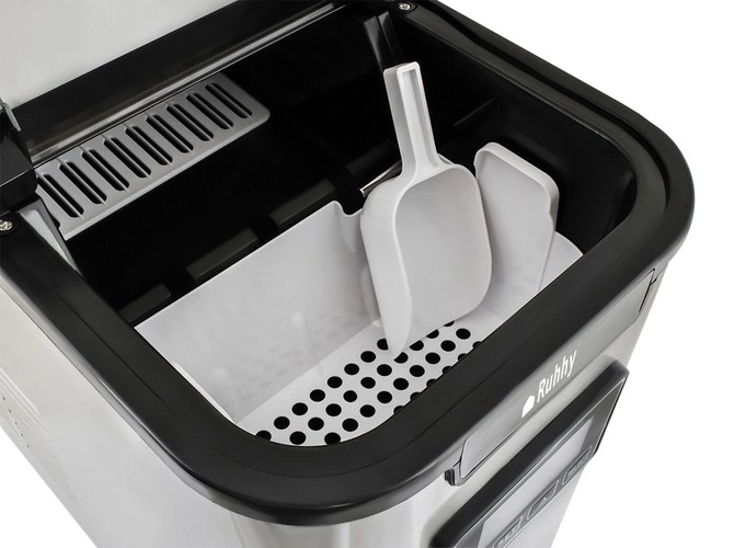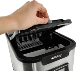 La máquina de hielo Ruhhy es la solución perfecta para preparar bebidas frías en casa y en la oficina. Con su alta capacidad de hasta 12 kg de hielo al día y la posibilidad de producir tres tamaños diferentes de cubitos (S/M/L), siempre podrás tener hielo exactamente según tus necesidades. Solo llena el depósito con agua, elige el tamaño de los cubitos y disfruta de un refresco helado en pocos minutos.