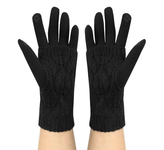 Prácticos guantes táctiles en elegante color negro que permiten usar el smartphone sin quitárselos gracias a la superficie especial en el pulgar e índice. Incluyen un cálido puño desmontable con diseño de punto para protección extra contra el frío y el viento. Corte unisex, material suave y talla universal que garantizan comodidad al viajar, conducir y en el uso diario.
