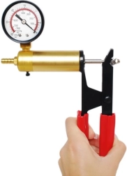 Empuñadura ergonómica, cuerpo resistente y manómetro de fácil lectura permiten generar vacío con precisión hasta -1 bar y controlar fácilmente las presiones durante el diagnóstico.