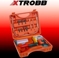 - maletín, bomba con manómetro, manguera flexible, juego de boquillas y tapones, juego de conexiones con mangueras, juego de acoplamientos, recipiente, dos tapas (una con 2 boquillas)