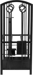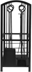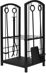 El atizador, las tenazas, la pala y el cepillo cubren todas las tareas de la chimenea: desde distribuir los troncos al rojo vivo hasta la rápida limpieza de cenizas. Las herramientas se cuelgan en ganchos integrados.