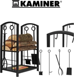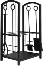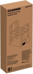 El equipamiento completo 4 en 1 incluye un atizador para distribuir uniformemente la leña o el carbón incandescente, tenazas para manipular los troncos con seguridad, una pala y un cepillo para un hogar limpio. Las herramientas cuentan con prácticos ganchos para colgarlas ordenadamente en el soporte.