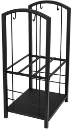 El práctico soporte para leña con accesorios te permite almacenar los troncos junto a la chimenea y tener todo lo necesario a mano. Sus dos niveles de almacenamiento alojan la leña y los pequeños útiles; además, el estante inferior cerrado evita que caigan astillas y suciedad. El acabado negro mate en acero inoxidable disimula pequeños arañazos e impurezas y ofrece un aspecto atemporal.